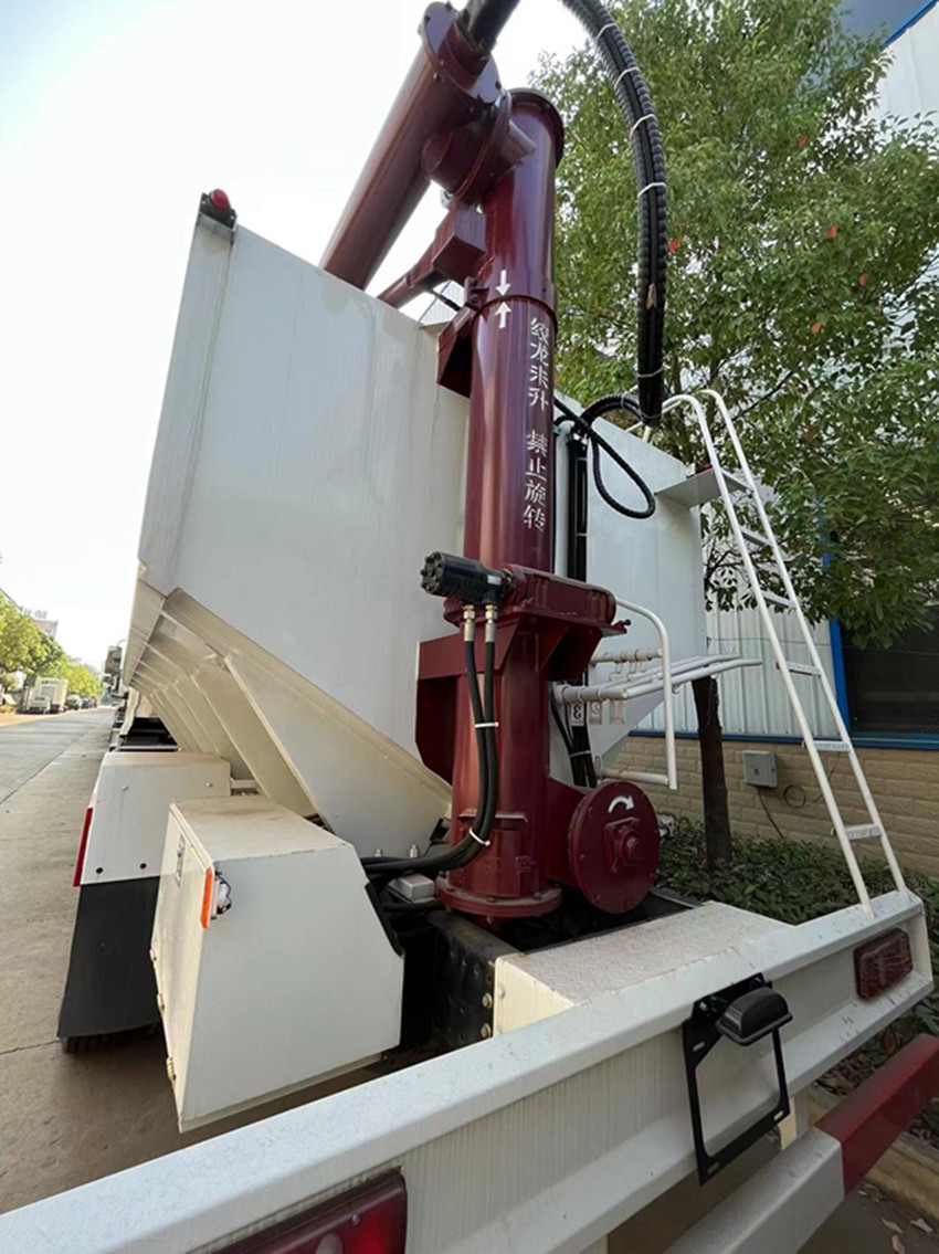 可獨(dú)立控制各分倉卸料順序和速度,整車3條蛟龍(底部水平絞龍、尾部垂直絞龍、頂部卸料絞龍),由取力器經(jīng)車輛變速箱取力后,將動(dòng)力傳動(dòng)至高壓油泵以驅(qū)動(dòng)液壓系統(tǒng)帶動(dòng)各絞龍工作,或者由3個(gè)5.5kw 380v電機(jī)帶動(dòng)各絞龍工作,頂部絞龍液壓控制舉升,可左右旋轉(zhuǎn)180°此車公告+環(huán)保+燃油齊全,全國上戶無憂!