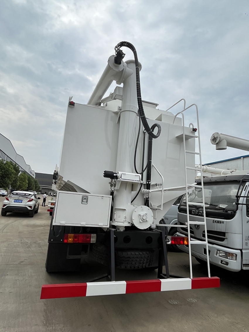 可獨立控制各分倉卸料順序和速度,整車3條蛟龍(底部水平絞龍、尾部垂直絞龍、頂部卸料絞龍),由取力器經車輛變速箱取力后,將動力傳動至高壓油泵以驅動液壓系統(tǒng)帶動各絞龍工作,或者由3個5.5kw 380v電機帶動各絞龍工作,頂部絞龍液壓控制舉升,可左右旋轉180°此車公告+環(huán)保+燃油齊全,全國上戶無憂!